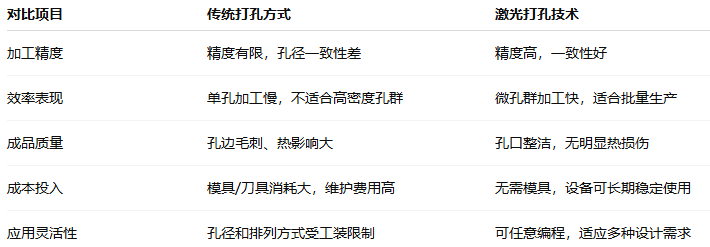 高速批量加工:几十上百个孔可在数秒内完成,大幅提高生产效率。