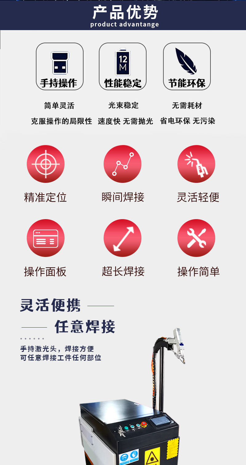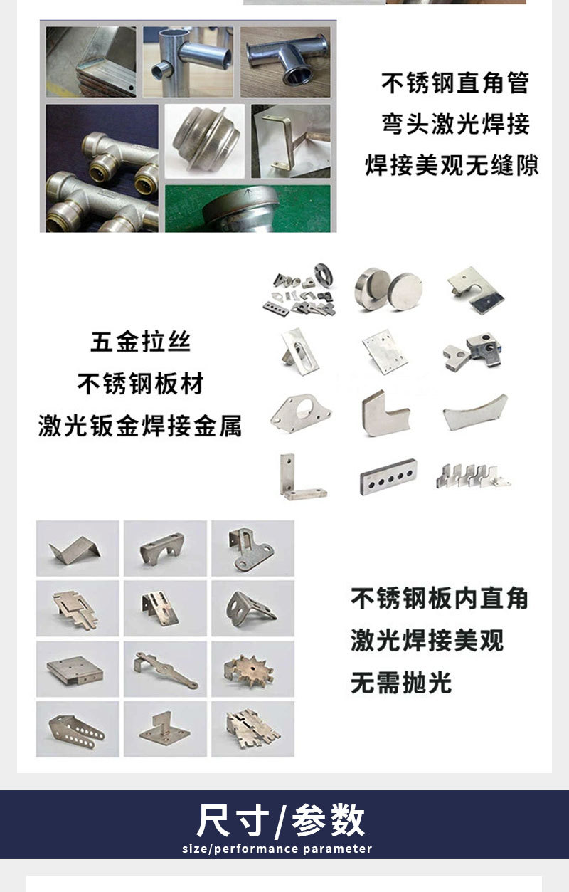 应用行业:大型铝合金 柜机 机箱 铝合金门窗框架 不锈钢材质大件内角外角 拼缝的远距离点焊 满焊